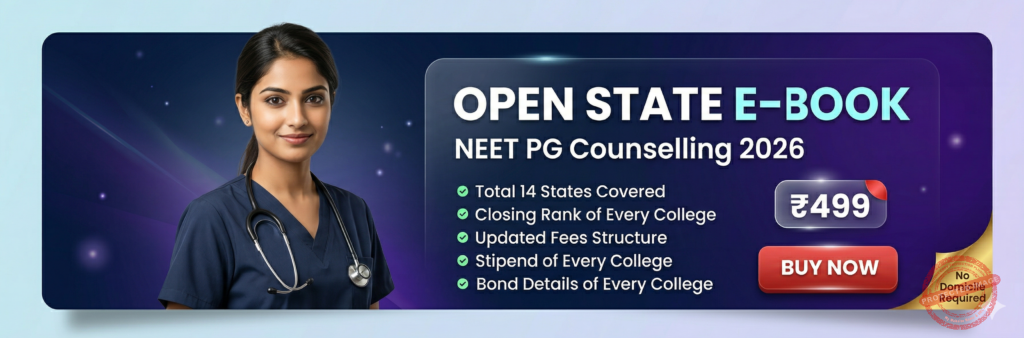 The counselling process is conducted online and is based on NEET PG rank, eligibility criteria, and reservation policies. Uttar Pradesh follows a mixed participation model, where Government quota seats are primarily reserved for state domicile candidates, while Private and Minority college seats are open to a wider pool of candidates, including those from other states.